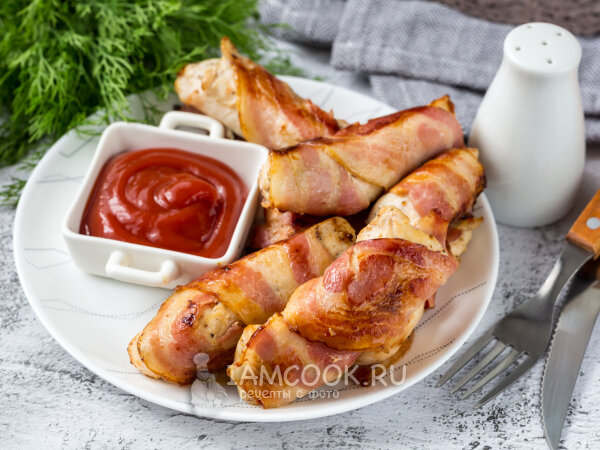 - Курица в беконе на сковороде: Куриная грудка, обёрнутая в хрустящий бекон, порадует не только любителей мяса, но и тех, кто ищет новые вкусовые ощущения. К этому блюду прекрасно подойдёт легкий бокал белого вина.