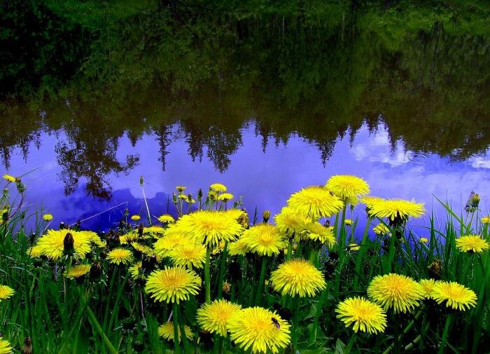 - такое же количество цветущих головок одуванчиков;