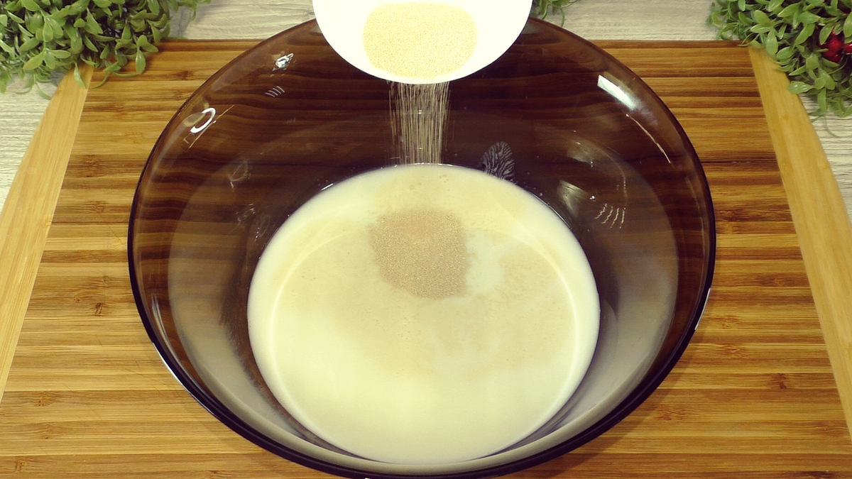 2. Всыпьте дрожжи, тщательно перемешайте и оставьте смесь в теплом месте на некоторое время.
