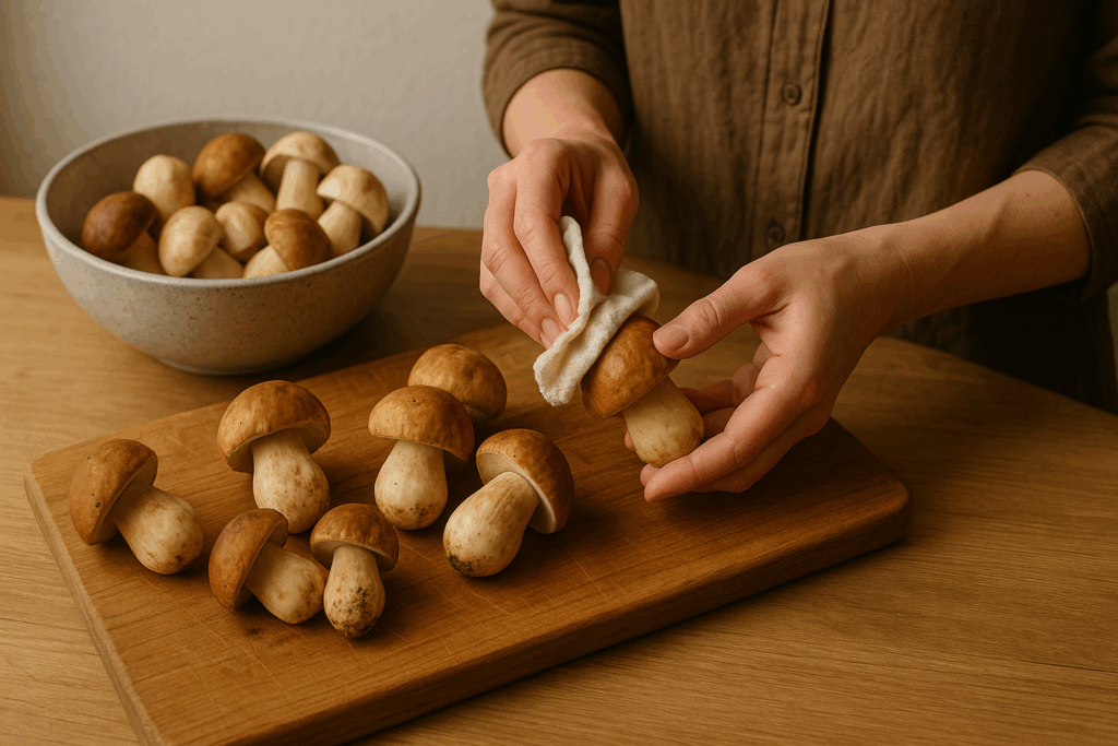 Приготовление начинается с подбора свежих и неповрежденных грибов. Важно не мыть их, а аккуратно протереть влажной салфеткой, чтобы не нарушить натуральный вкус.