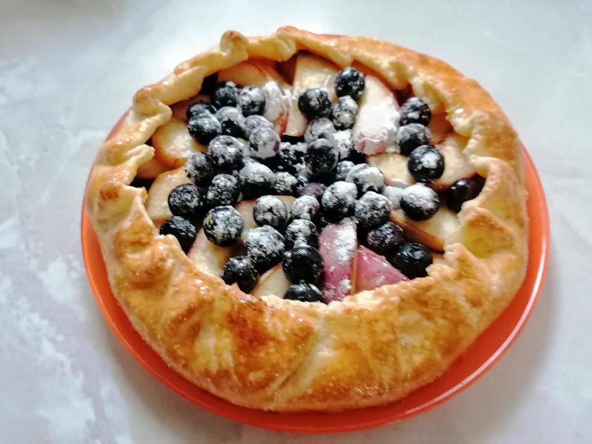 Фрукты моются и нарезаются, после чего тесто раскатывается в круги толщиной около 5 миллиметров. Начинка выкладывается на тесто, равномерно посыпается крахмалом и сахаром, а края загибаются.