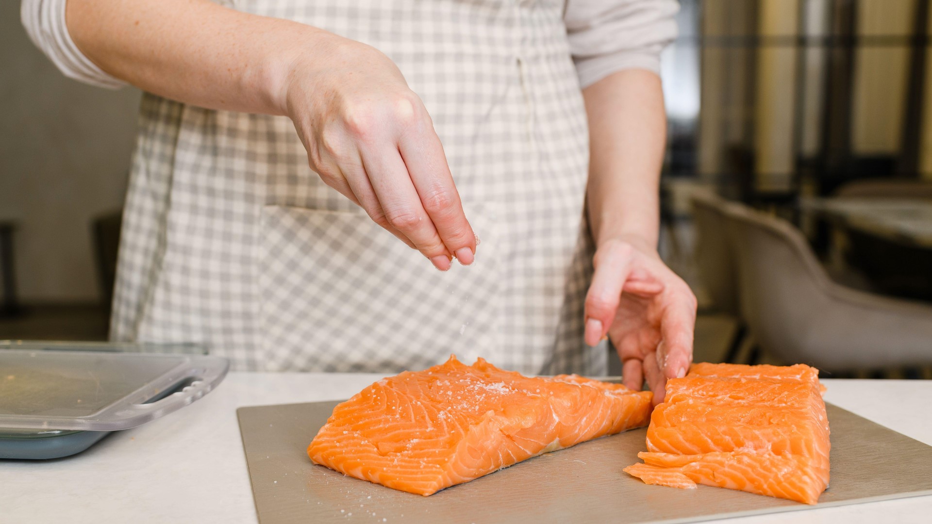 Все повара солят блюдо, но не все знают, что делать это нужно, поднимая руку как можно выше. Чем выше начальная точка, тем равномернее распределится соль по продуктам. Это правило касается гарниров, мяса, рыбы.