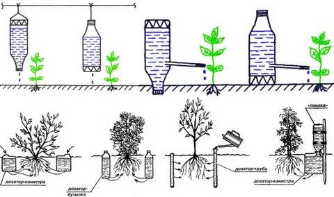 - Бутылочный автополив: Пластиковая бутылка с маленьким отверстием в крышке обеспечивает плавный полив, идеально подходящий для рассады или молодых кустиов смородины и малины. Просто заполните бутылку водой и вставьте её горлышком вниз в почву.
