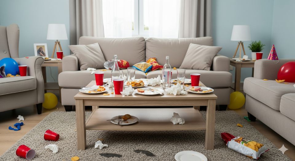 Приглашая друзей или родственников на вечеринки, многие хозяева боятся, что после веселья их дом превратится в зону бедствия. Пачки грязной посуды, липкие столы и различные следы от еды порой выглядят как последствия настоящей войны. Однако беспорядок после праздника — это не признак плохого хозяина, а обычное следствие весёлого общения.