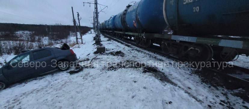 В Онежском округе легковушка столкнулась с грузовым поездом