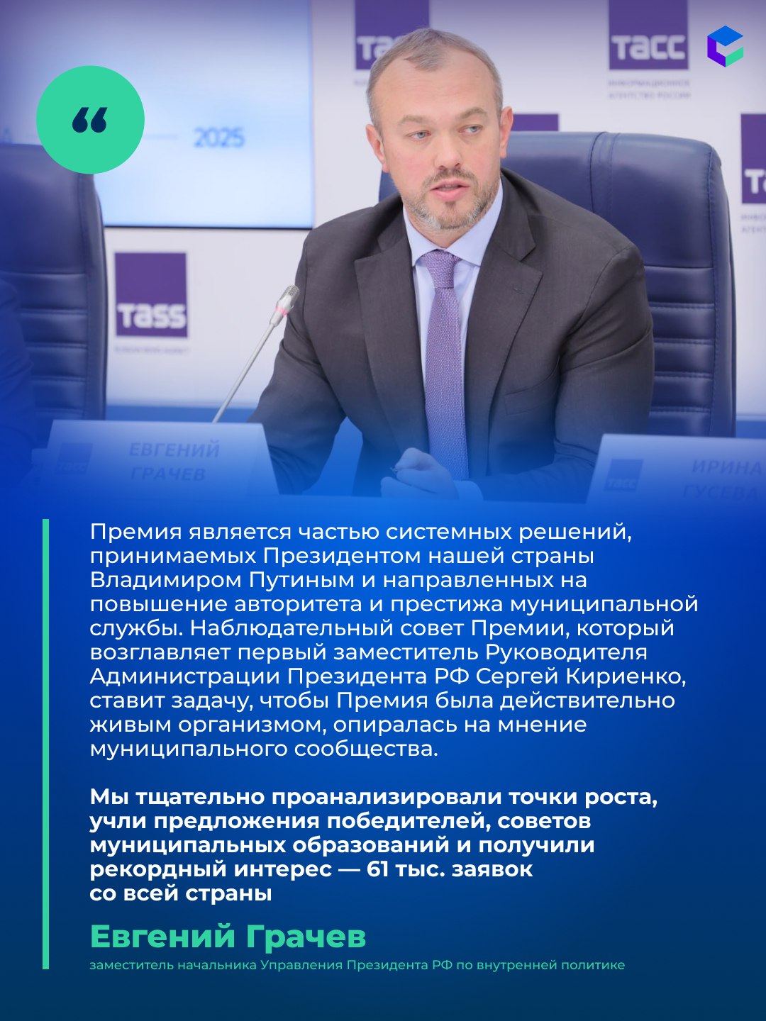 Члены Наблюдательного совета и представители муниципального сообщества поделились итогами заявочной кампании премии в России — читайте в карточках. Также они рассказали об учреждении дополнительного конкурсного направления «Единство народов — сила страны». Набор заявок в номинации продлится до 18 января 2026 года.