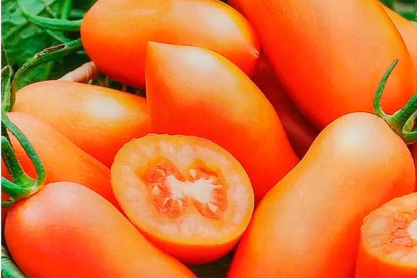Кусты растают до 140 см в высоту и обладают гибким стеблем, подходящим для удерживания крупных плодов, не повреждая их. Листья у растения длинные, насыщенного темно-зеленого цвета. Соцветия простые, а количество гнезд в плодах варьируется от четырех до шести. На начальной стадии созревания помидоры зеленые с темным пятном у основания, а по мере роста становятся оранжевыми или светло-розовыми. Важно отметить, что каждый плод весит от 150 до 240 граммов, за что сорта ценят среди огородников.