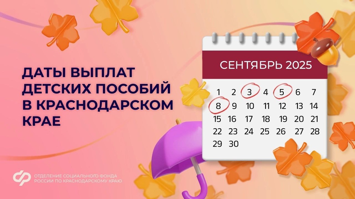 Для жителей Краснодарского края, получающих пособие через Почту России, даты направляют с 3 по 24 число каждого месяца. Чтобы избежать недоразумений, лучше заранее уточнить дату выплаты в своем отделении почтовой связи.