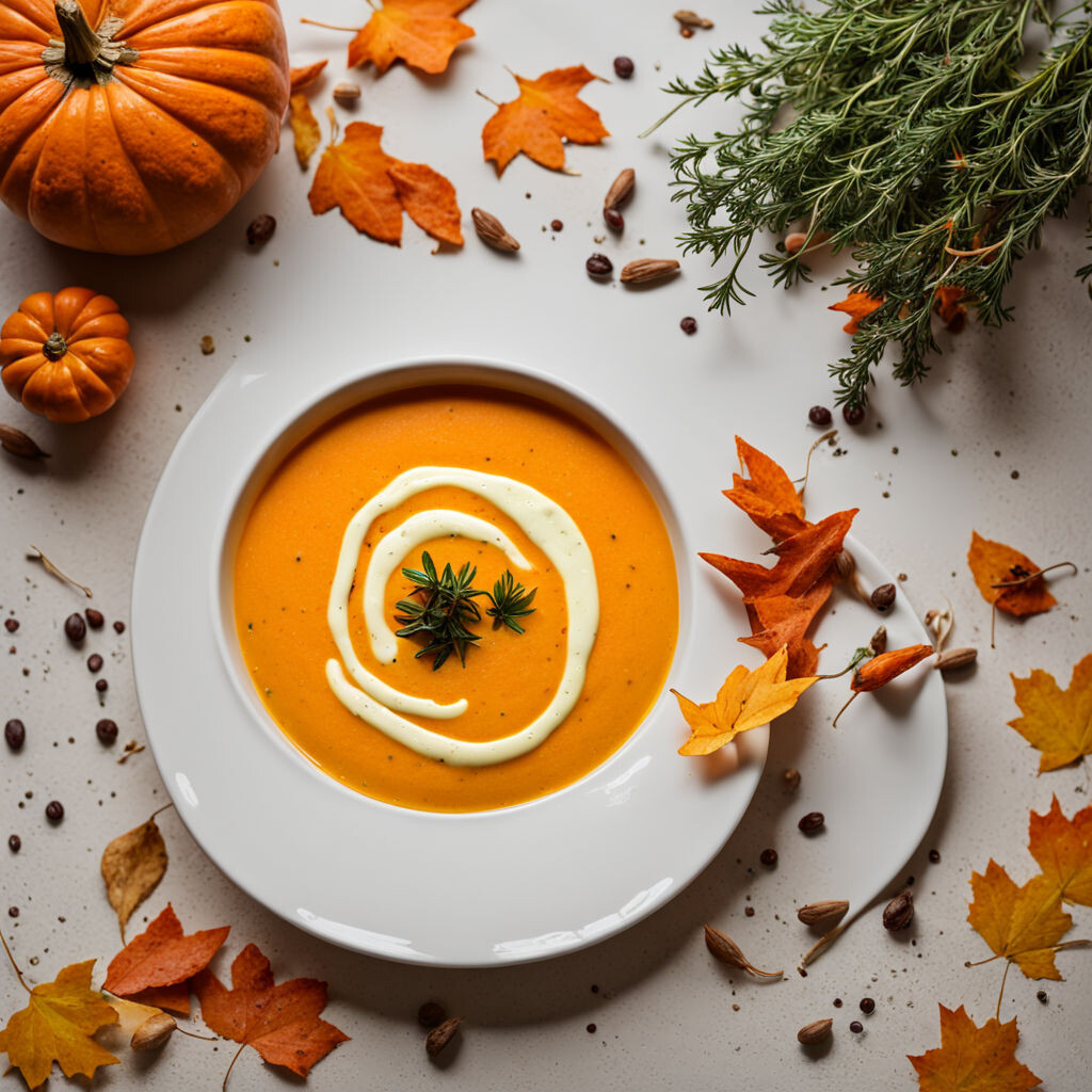 Процесс: нарежьте тыкву и морковь, обжарьте лук и чеснок до золотистого цвета, добавьте овощи, залейте бульоном и варите. Затем сделайте крем с помощью блендера, добавив сливки для мягкости.