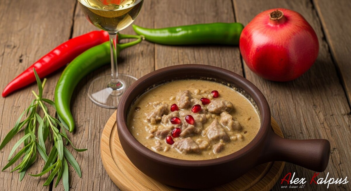 Тушеная телятина в ореховом соусе, известная как "Яхни", является одним из старейших и наиболее уважаемых блюд Грузии, восходя к традициям винодельческих регионов Кахетии и Имеретии. Это угощение ставит во главу угла уникальный союз нежного мяса и насыщенного орехового соуса с пряными травами, что делает его не только вкусным, но и символом грузинского гостеприимства.