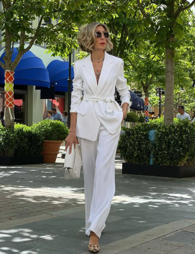 - Светлые тона – ваш шанс на обновление!Белый цвет не только освежает, но и визуально омолаживает. Белый брючный костюм станет отличной основой для стильного делового или повседневного образа. Простота и свободный крой делают его универсальным выбором для любой ситуации.