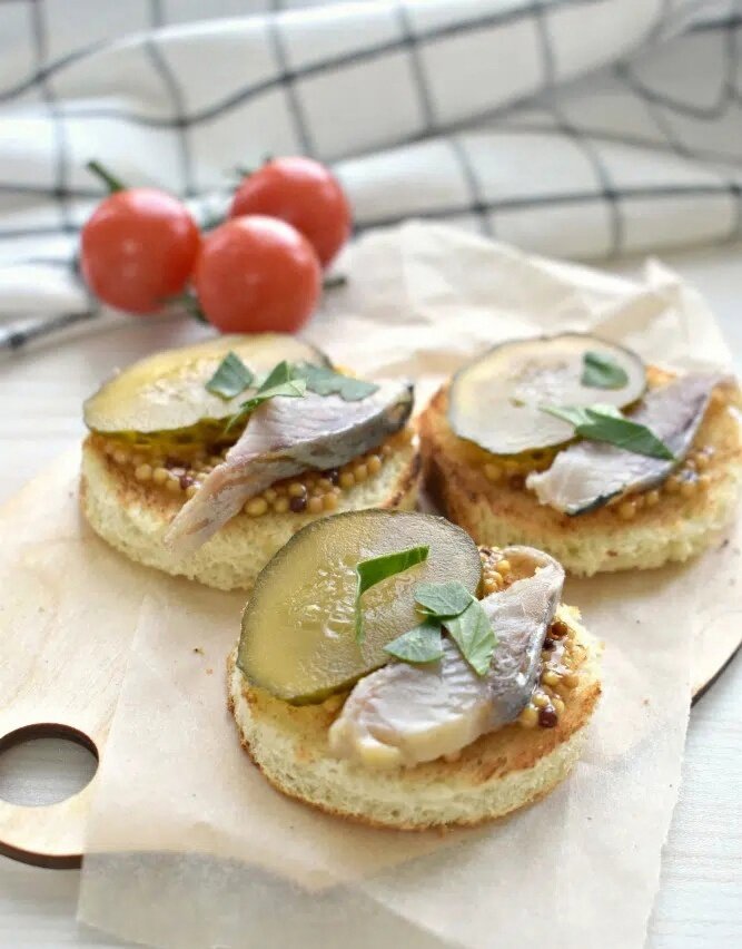 Эти вкуснейшие бутерброды с селедкой и соленым огурцом станут настоящей звездой любого застолья и порадуют даже самых взыскательных гурманов.