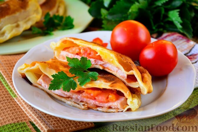 - Лепёшки-пиццы — эти хрустящие пирожки, наполненные колбасой и сыром, подарят всем незабываемые ощущения. Приготовить их легко: всего пару минут на сковороде, и горячее угощение готово!