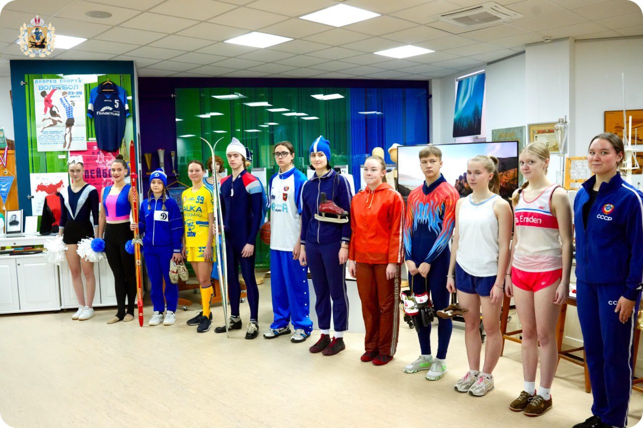Яркие образы представили первокурсники-физкультурники, а студенты третьего курса, обучающиеся по направлению «Технология художественной обработки материалов», помогали реставрировать спортивную одежду и сканировать исторические документы.