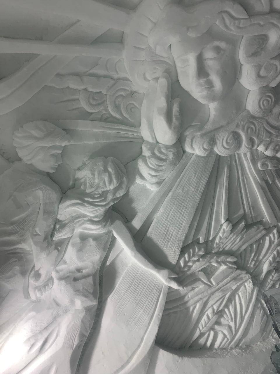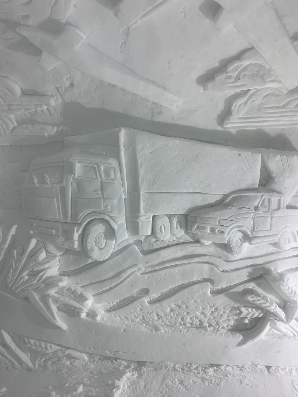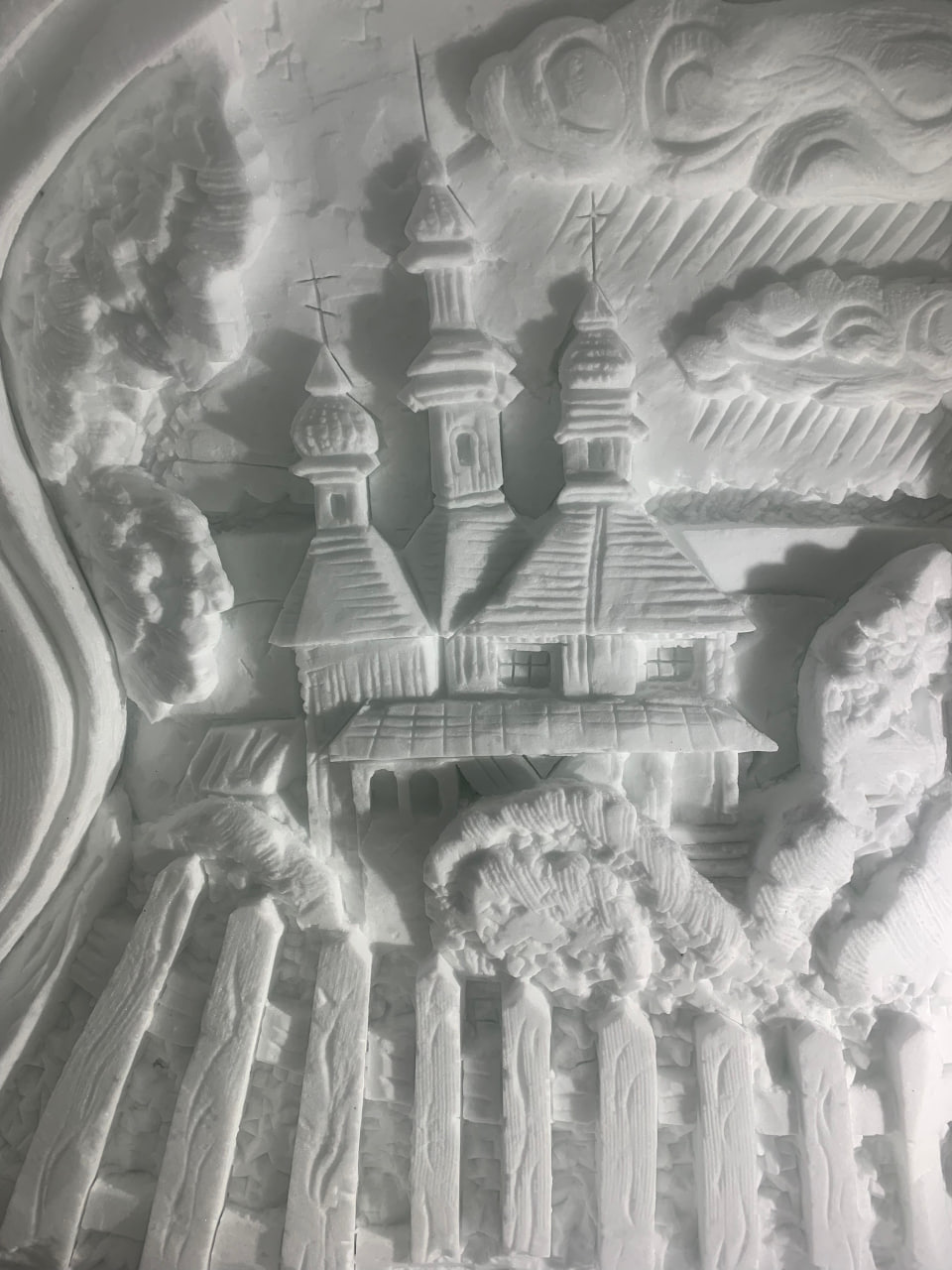 Но этой зимой у резчика другая цель – украсить один из залов Снежной деревни в Хибинах резными украшениями на тему «С чего начинается Родина». Резать ему теперь приходится не по дереву, а по снегу!