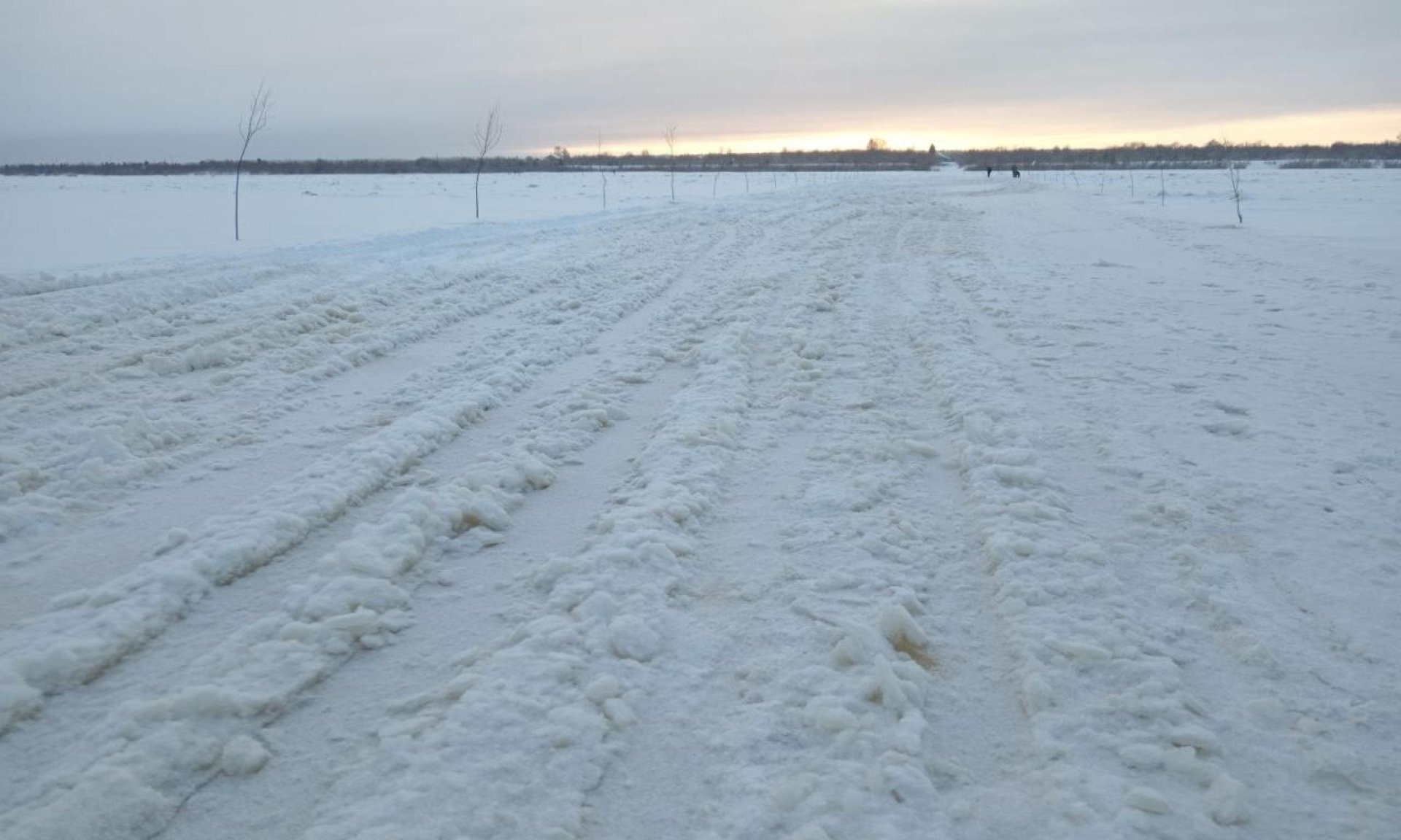 Переправа в деревне Кеврола так и не начала работу. Ледовый покров серьёзно повреждён. Причиной стали не природные условия, а действия отдельных водителей, которые проигнорировали запрещающие знаки и выехали на необорудованный лёд.