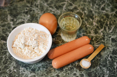 При выборе сосисок отдавайте предпочтение качественным брендам. Перед началом приготовления уберите целлофановую оболочку или тщательно промойте натуральную. Яйцо разбейте в миску и немного взбейте с добавлением щепотки соли.