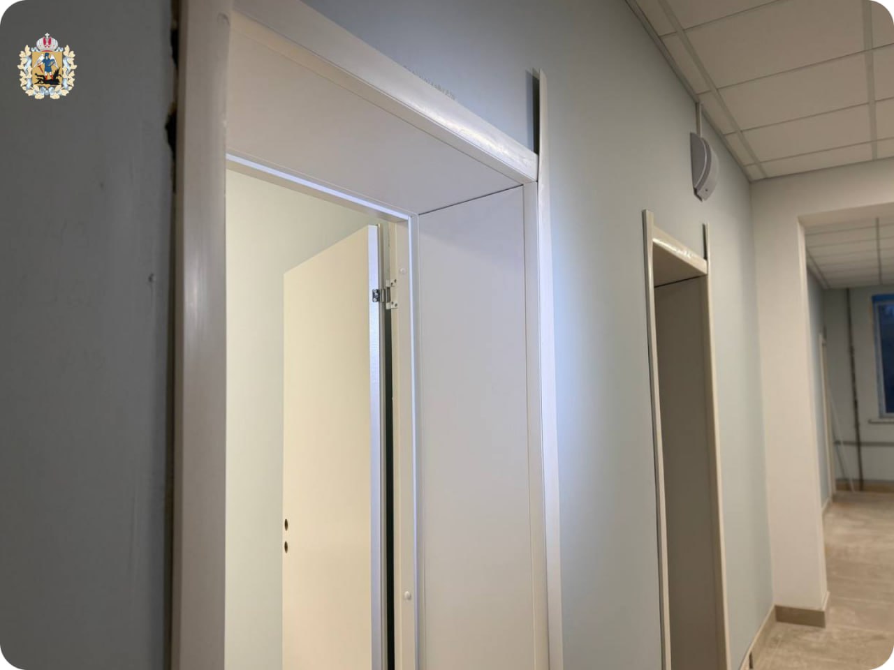 Сейчас полностью заменена вся инженерия, установлены новые окна и лифт, сделана входная группа. Осталось установить двери, а также немного оштукатурить и докрасить стены. Готовность объекта составляет 98%. Планируется, что обновленная поликлиника откроется в начале 2026 года.