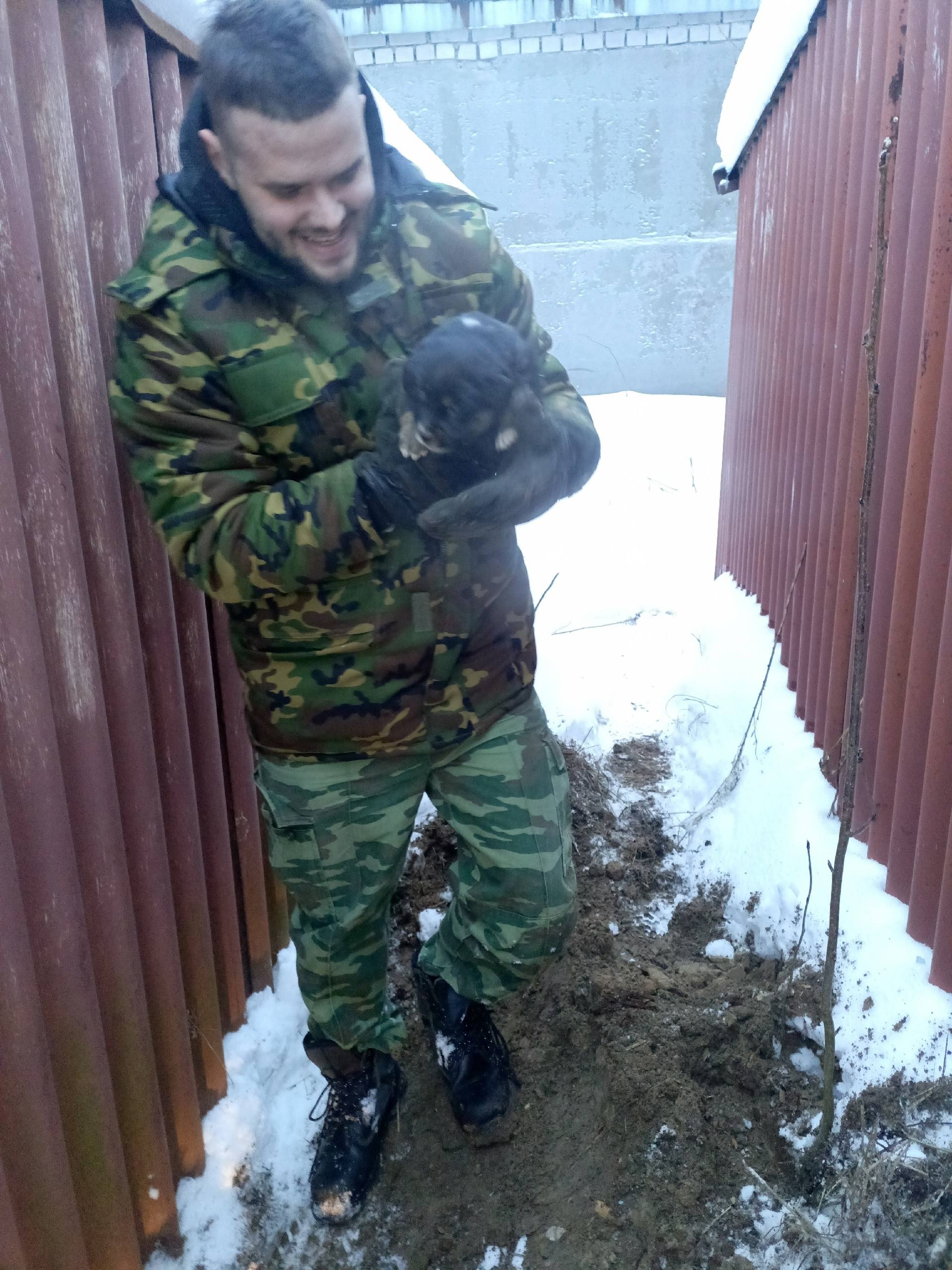 Герои дня — Алексей Пуляев и Алексей Талдонов. Молодые люди сделали подкоп под гараж, отрыли больше метра замёрзшей земли и вытащили щенков.