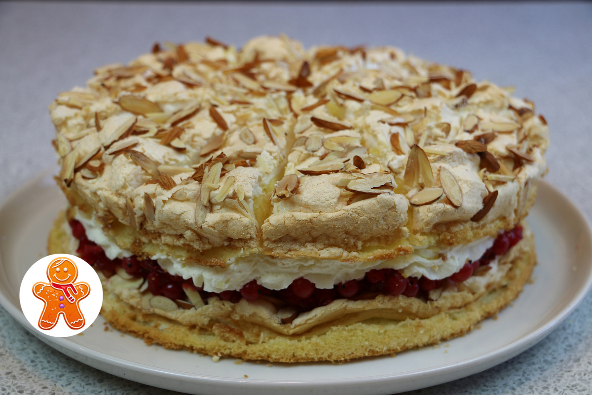Торт состоит из оригинальных коржей, которые сочетает в себе два разных слоя. Первый слой создает основу с нотками песочного теста, а второй — хрустящий слой безе. Все это украшает облепление из миндальных лепестков, которое добавляет текстурную и визуальную яркость к десерту. Внутреннюю часть между коржами зачастую заполняют кисленькими ягодами — например, красной смородиной или малиной. Свежие ягоды идеально дополнят легкий сливочный крем, превращая торт в настоящий праздник вкуса.