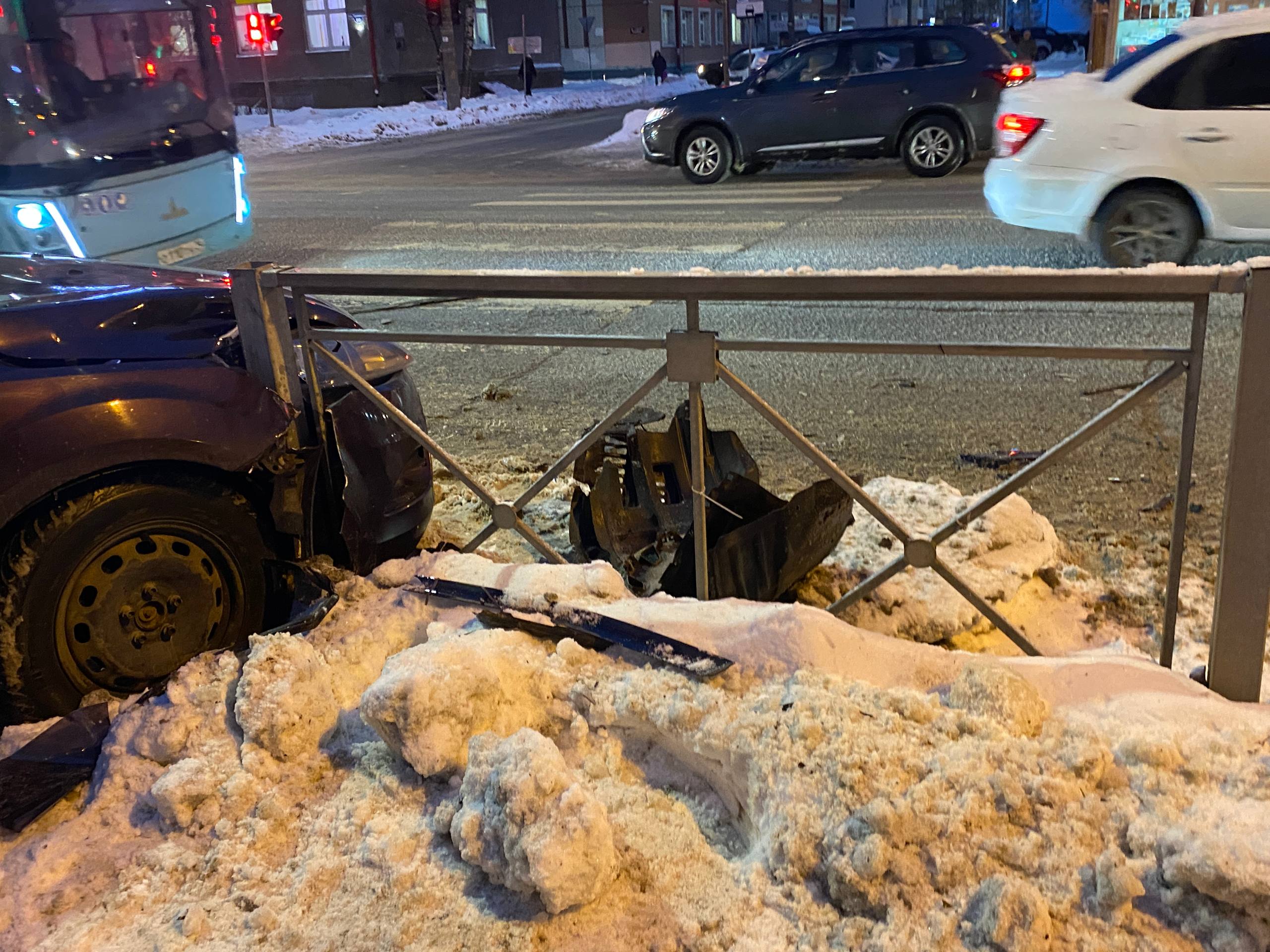 Одну из машин вынесло на тротуар. Информации об обстоятельствах аварии пока нет.