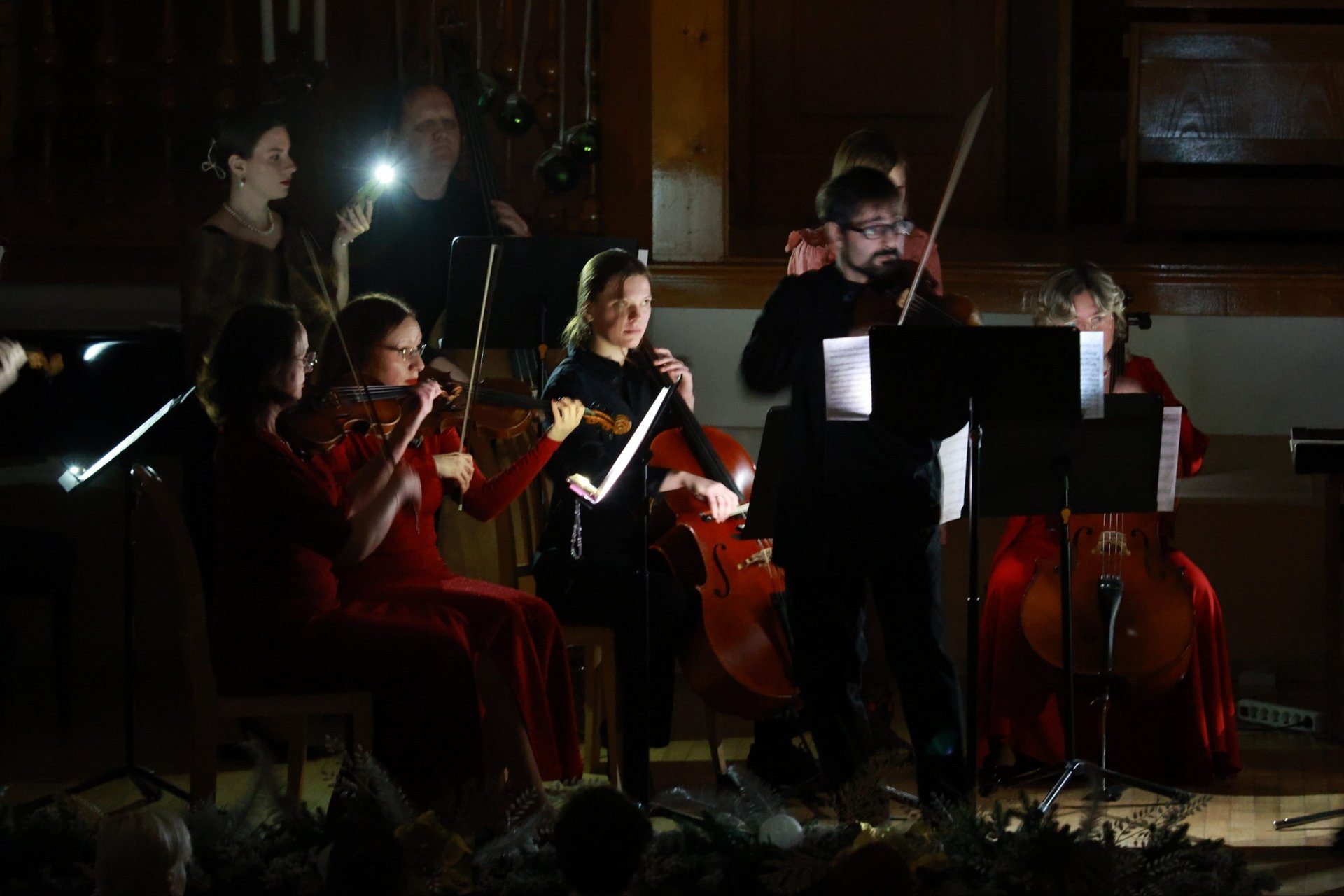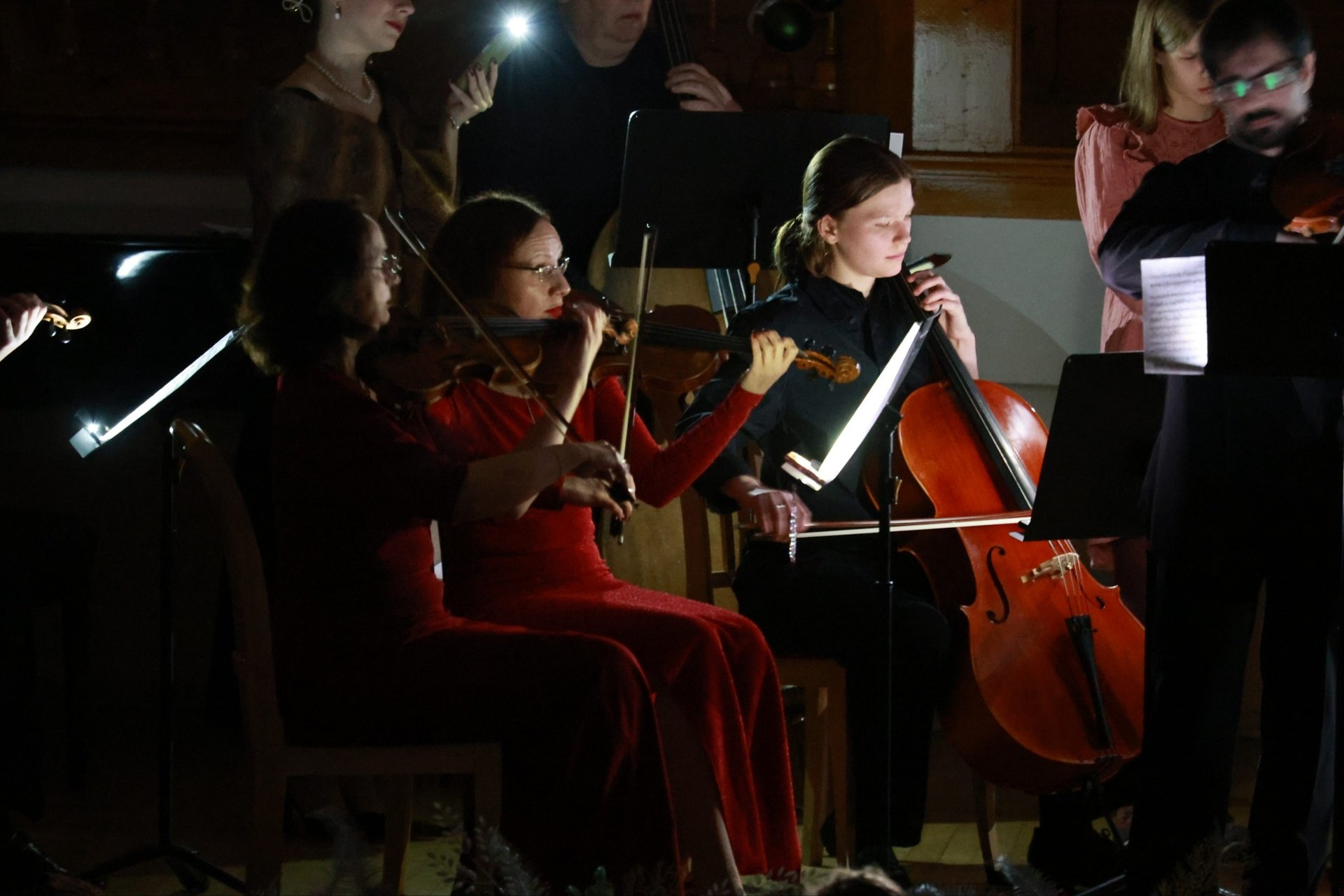 Один из домов, которые сегодня оказались без электроснабжения, – Кирха. Артисты решили продолжить концерт при свечах и в свете фонариков.
