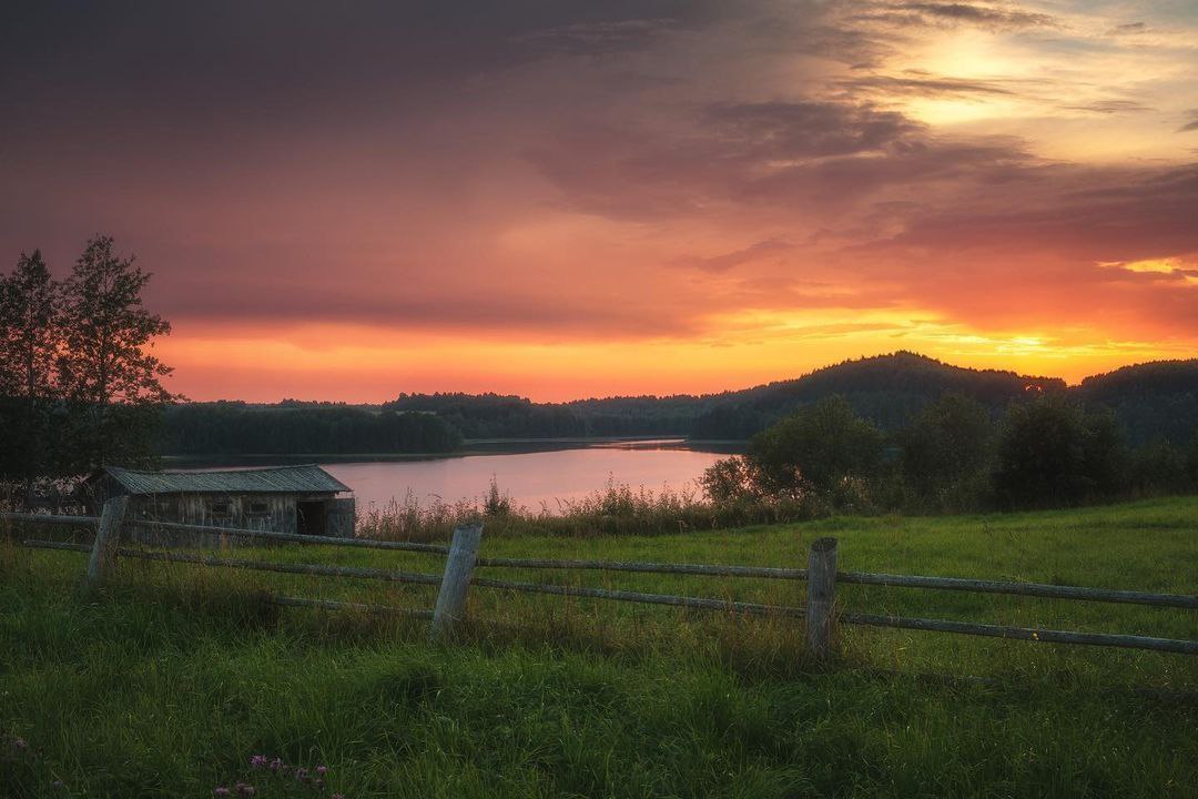 Закат в Кенозерском национальном парке в Архангельской области на крайнем севере России и планеты.