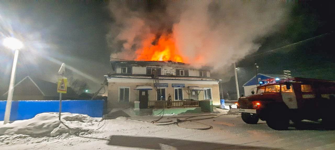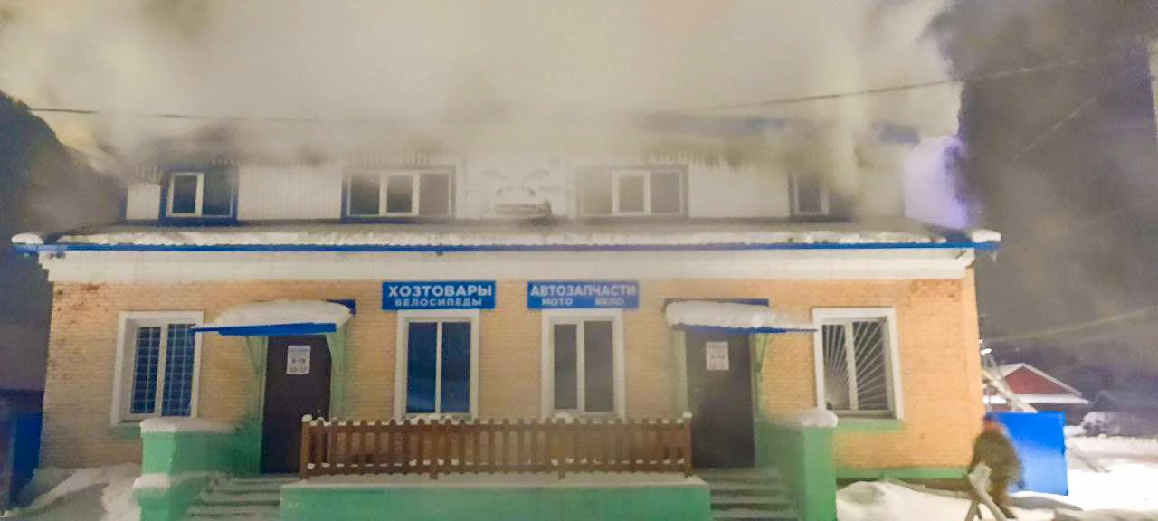 Сегодня в 03:30 в посёлке Кулой произошёл пожар в кирпичном здании магазина хозяйственных товаров на улице Гагарина.