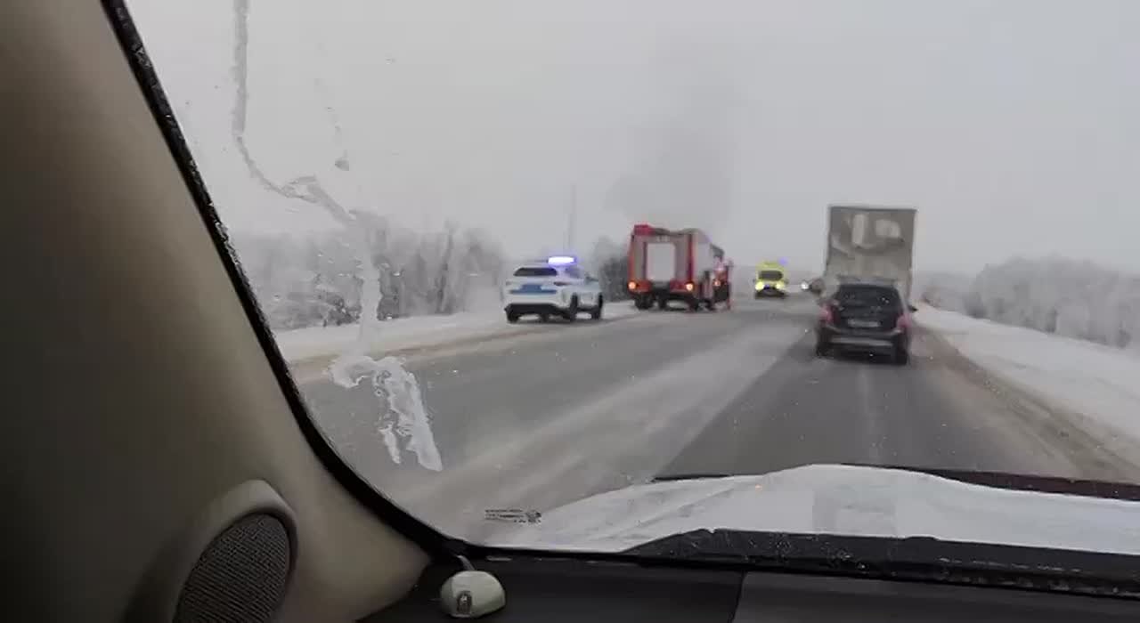 ДТП произошло между посёлком Цыгломень и Зеленцом. Судя по кадрам, которыми делятся очевидцы, в аварии пострадал автобус со знаком "Дети". Один из автомобилей после столкновения загорелся.