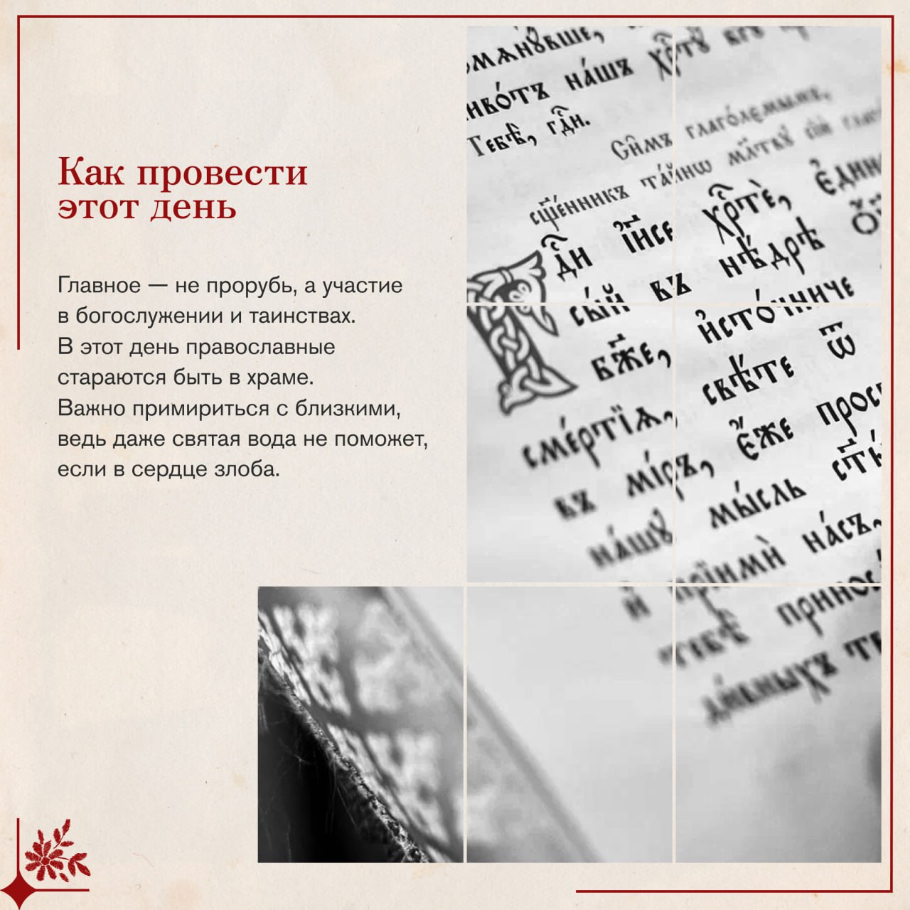 В этот день вспоминают, как пророк Иоанн крестил народ в Иордане в знак покаяния. Христос тоже вошел в воду, хотя был абсолютно безгрешен. Он сделал это не чтобы очиститься Самому, а чтобы Своим погружением освятить водную стихию и всю материю мира.