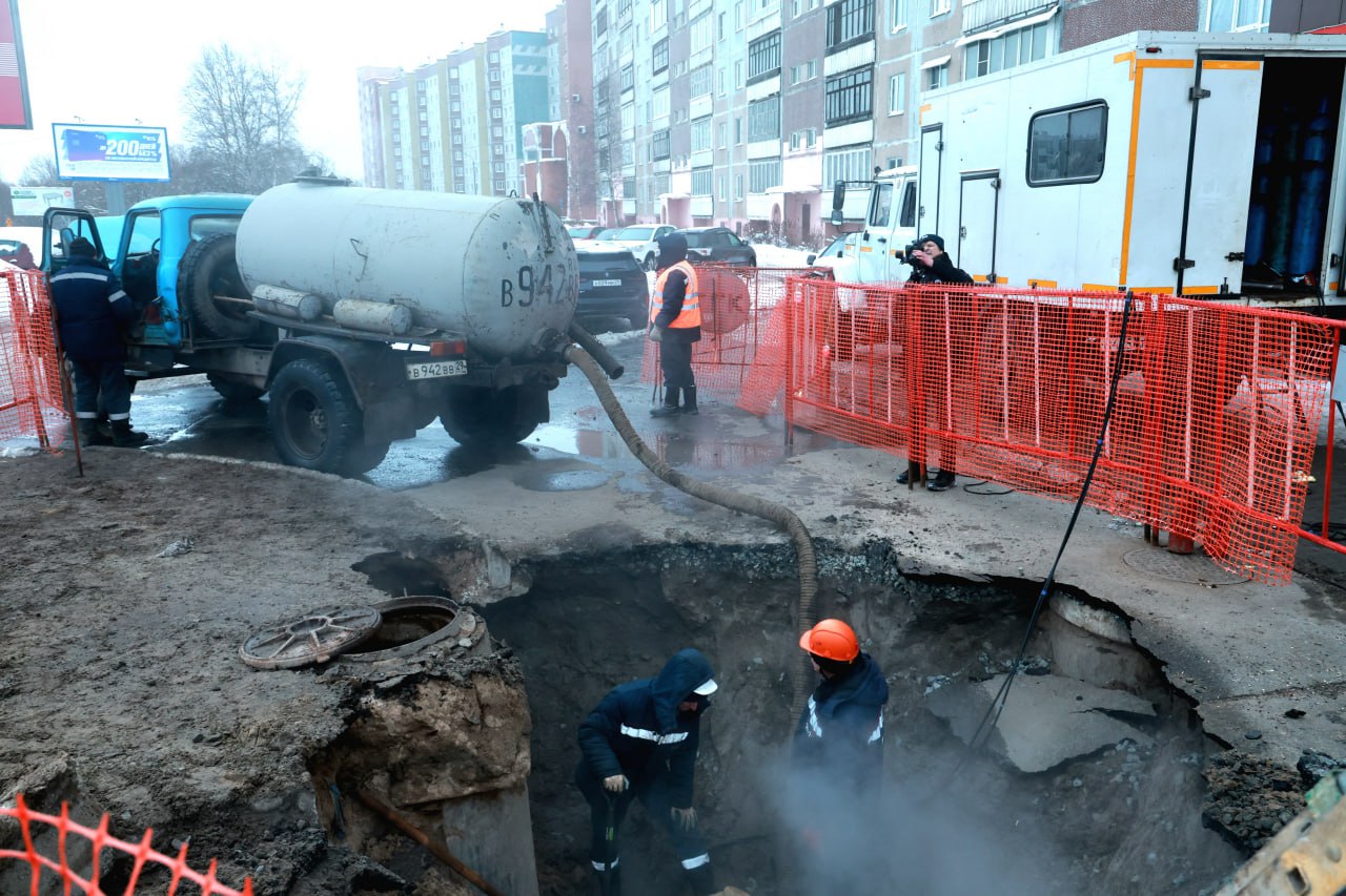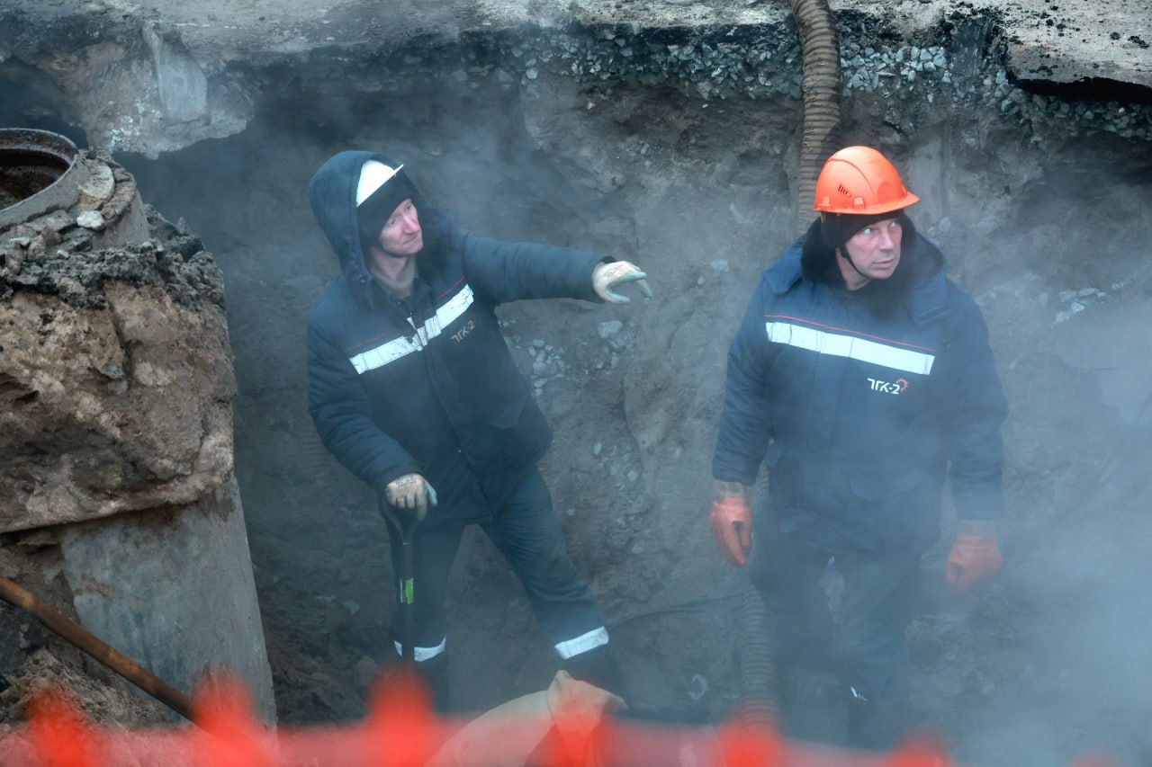 На 15 часов к работе приступило монтажное звено ТГК-2. Место повреждения магистрали определено: из-за подвижки грунта труба разошлась по шву. Врезка участка не требуется, только сварка.