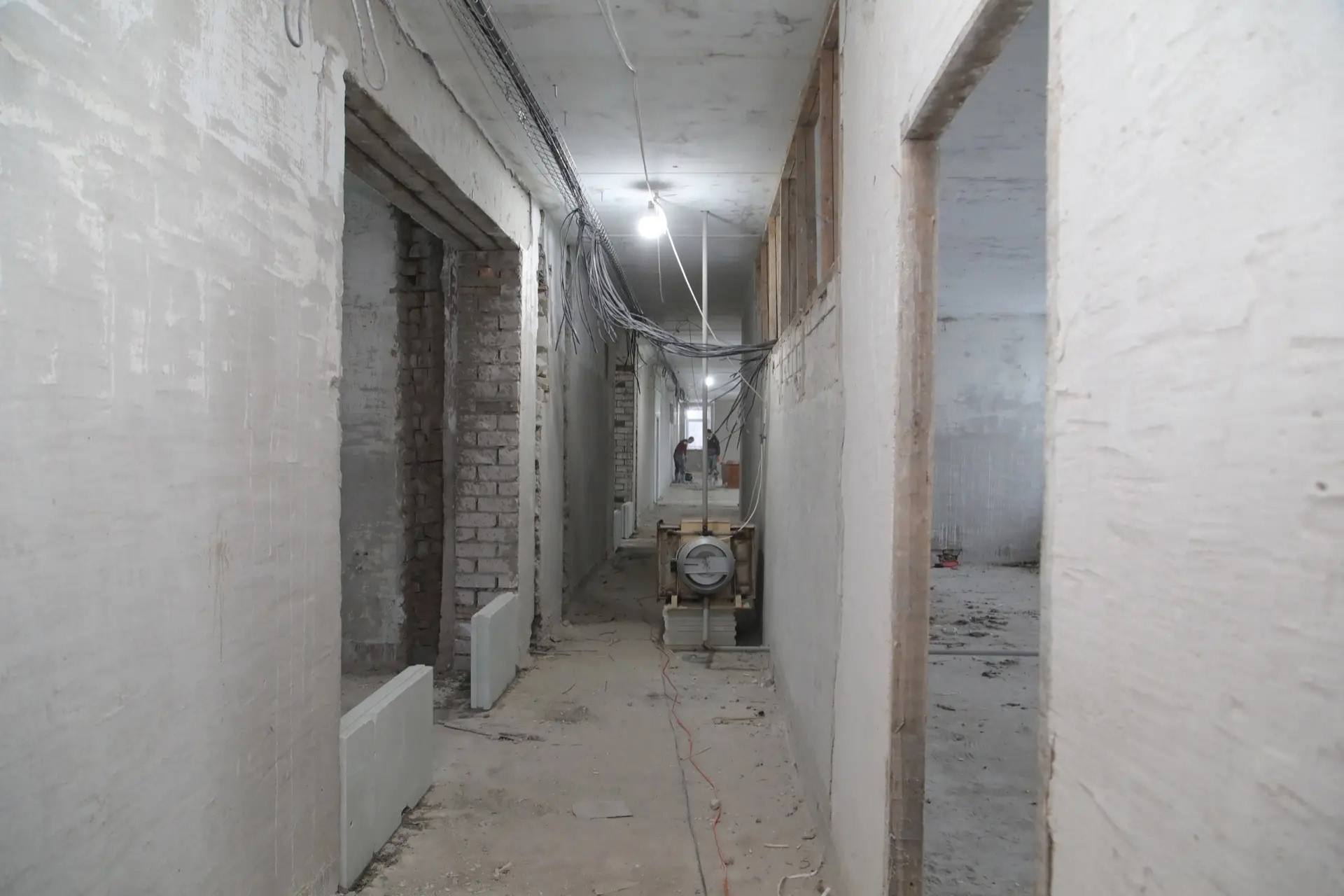 Контракт с прежним подрядчиком пришлось расторгнуть—сейчас идут судебные процедуры. Новый договор с компанией «Союзспецстрой» на 209 миллионов рублей заключили в конце октября, а объект передали в начале ноября. Объём работ большой, сроки сжатые—завершить капитальный ремонт нужно к середине августа. Взаимодействие с новым подрядчиком идёт конструктивно: уже заменены все оконные блоки, собраны временные схемы тепло- и электроснабжения, идут работы по прокладке инженерных сетей и подготовке помещений к отделке. Сейчас на площадке работает около 30 человек. Установлены системы видеонаблюдения, выполняются сантехнические и отделочные работы, скоро начнётся монтаж слаботочных сетей.