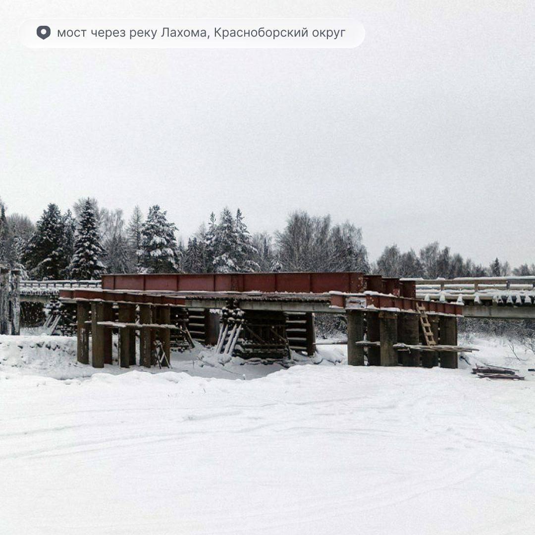 В Красноборском округе ведется капитальный ремонт моста через реку Лахому