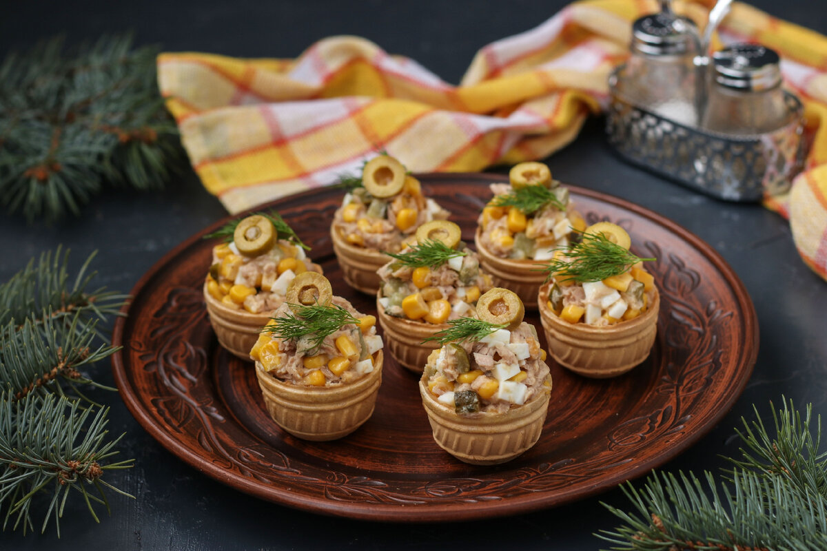 Тарталетки с тунцом — это легкая и утонченная закуска, которая станет настоящим хитом вашего новогоднего стола. Их легко приготовить, и они могут быть оформлены в праздничном стиле, что добавит дополнительный шарм к вашему столу.