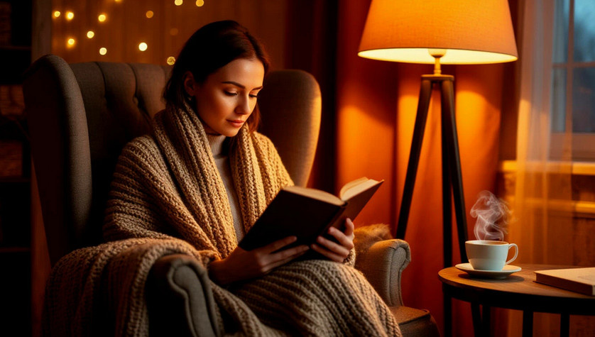 Создайте место для чтения: хорошее освещение, удобное кресло и плед рядом. Чтение становится более осознанным, если рядом стоит чашка чая и маленький столик. Этот уголок напоминает, что вечер можно провести спокойно, без суеты.