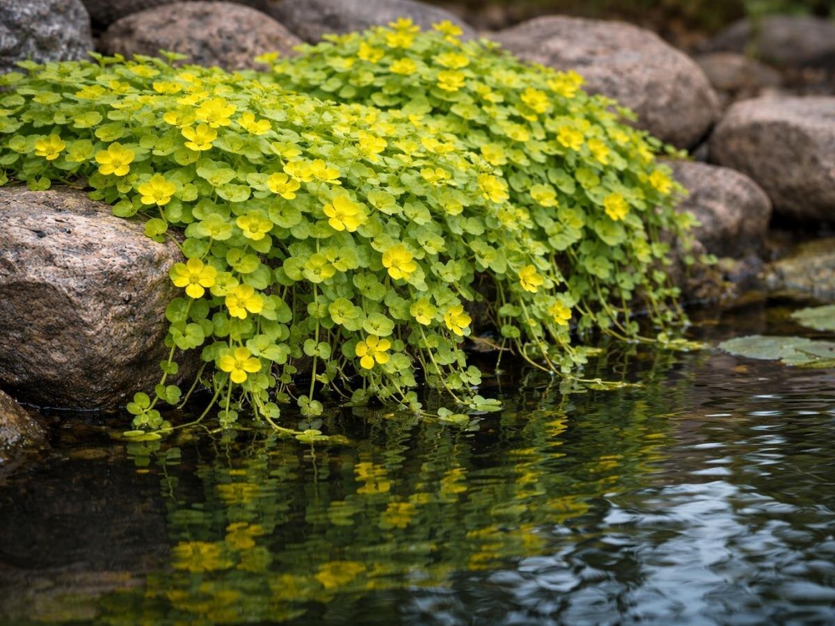 В садовом дизайне вербейник особенно хорош в сочетаниях с контрастными растениями: ярко-желтые листья выглядят заметно на фоне камня или тёмной зелени. Он не заменяет газон, но способен создать аккуратные декоративные поля и аккуратные дорожки зелени.