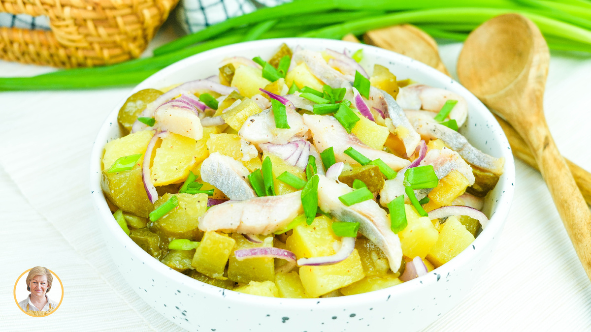 Базовые составляющие — отварной картофель, слабосольная селедка и маринованные огурцы — складываются в гармоничное сочетание. Лук мягко раскрывает вкус, лимонный сок с сахаром добавляют легкую кислинку и баланс сладости, а масло связывает все в одно целое.