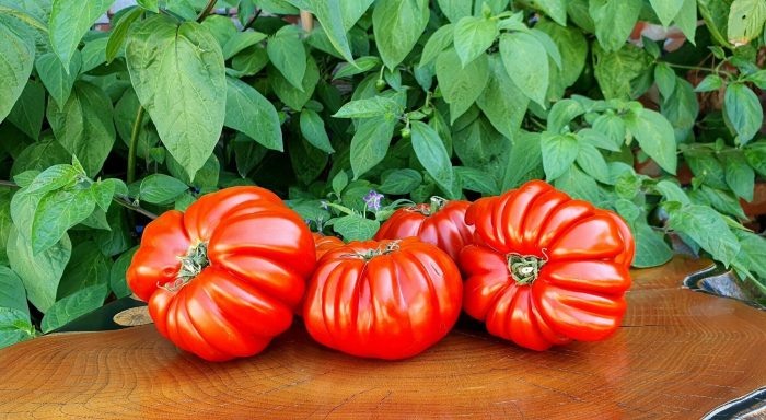 Среди множества сортов встречаются настоящие диковинки, и Плиссированный сердолик — одна из них. Его плоды крупные и плоские, с глубокими складками и характерным красно-коричневым оттенком. Растение высокое, требования к подвязке и формированию заметны с первых дней: крепкая опора и внимательное удаление пасынков помогают сохранить крупные плоды и красивый куст.