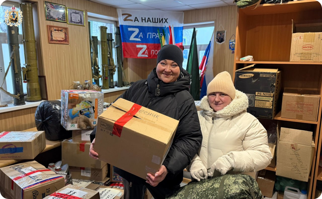 На передовую были отправлены два автомобиля: ГАЗель, загруженная гуманитарным грузом, и внедорожник УАЗ-буханка, который передадут военным подразделениям для выполнения боевых задач. Бойцам отправили продукты длительного хранения, маскировочные сети, бензопилу с запасной цепью, кувалды, тросы, ружья, пауэрбанки, индивидуальные перевязочные пакеты, теплую одежду, вязаные носки и варежки.