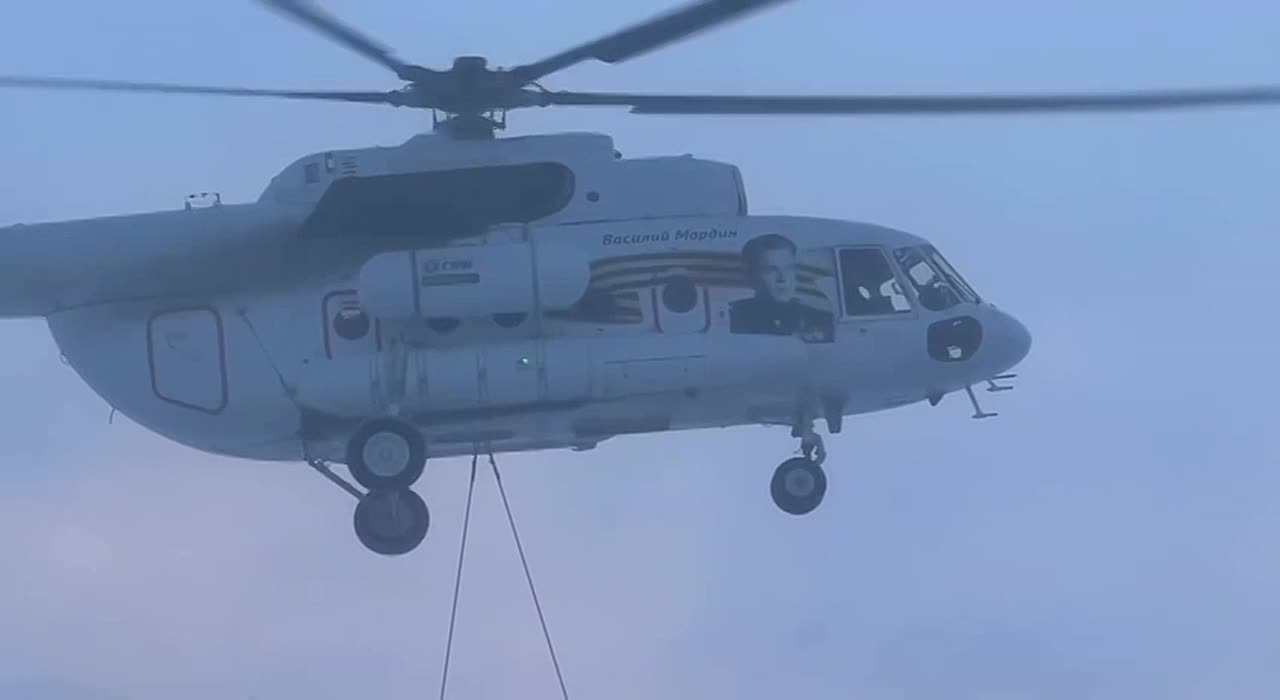 Вертолет Ми-8 Архангельского авиаоотряда помог оперативно установить опору ЛЭП для восстановления энергоснабжения региона