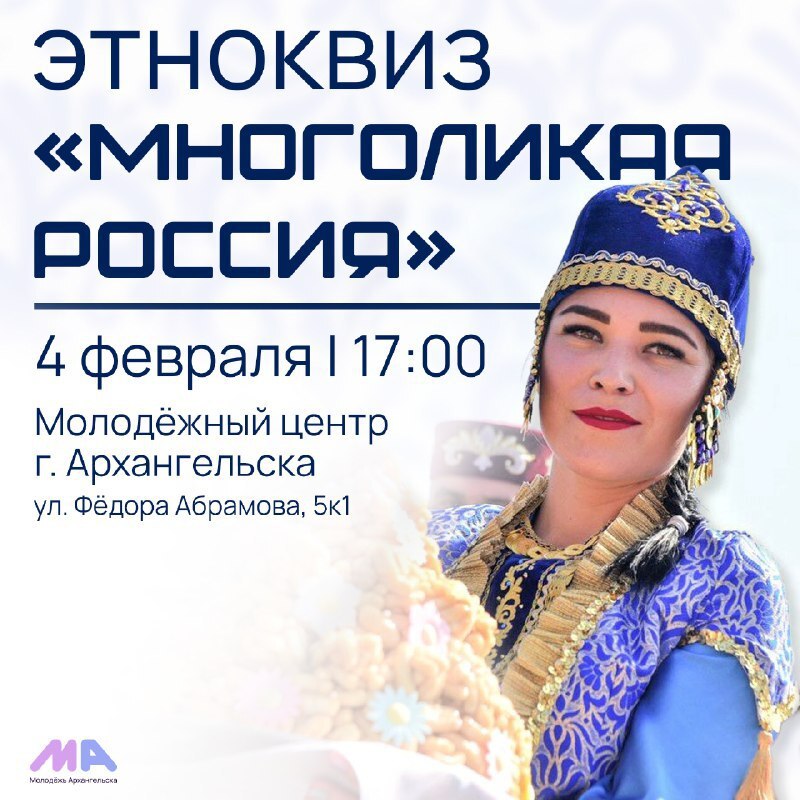 Молодежный центр Архангельска приглашает всех желающих принять участие в этноквизе «Многоликая Россия»!
