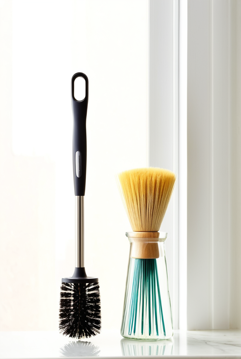 Правильный выбор ершика обеспечит идеальную чистоту на кухне. При выборе стоит обратить внимание на материал щетины: силиконовые модели были бы безопасны для деликатных поверхностей, в то время как нейлон универсален, а натуральные волокна идеально подходят для кухонной утвари из чугуна. Ручка должна быть удобной и надежной.
