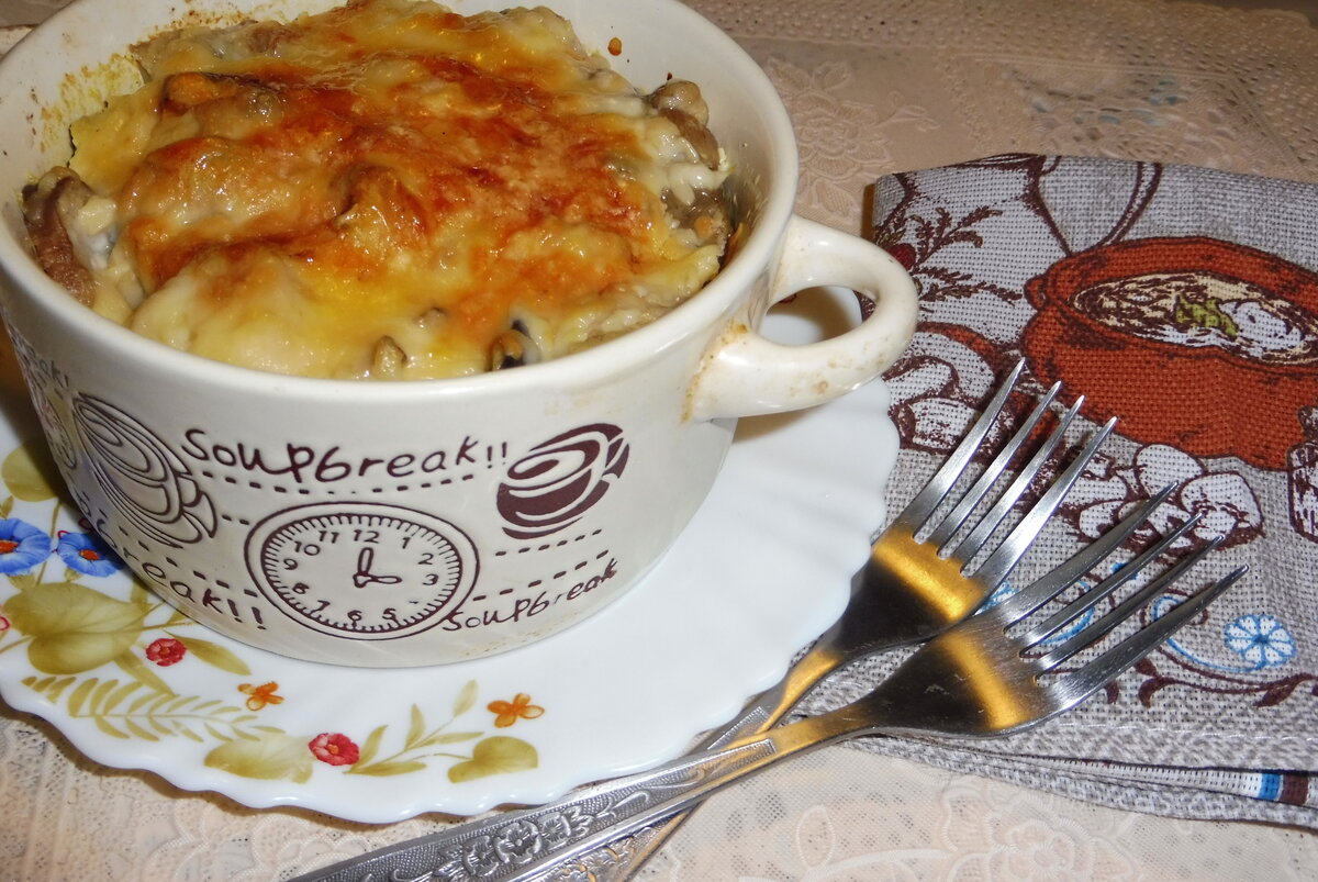 Это жюльен, наполненный ароматом шашлыка и белых грибов, с нежными сливками и хрустящей сырной корочкой, станет настоящим украшением вашего стола и подарит незабываемые вкусовые ощущения.