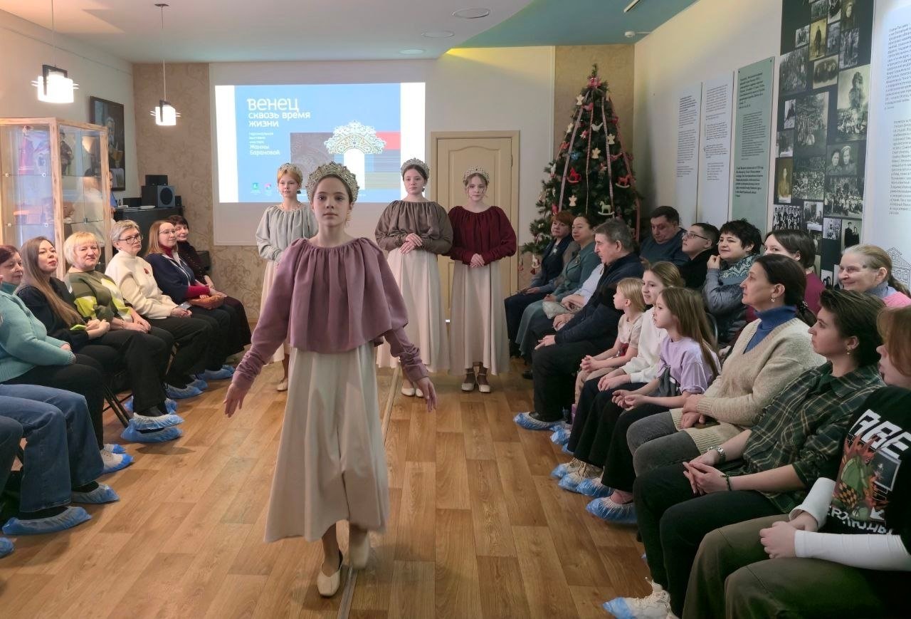 На торжественном открытии свои номера представили участники фольклорной студии «Прялица-кокорица», а также учащиеся мастерской жемчужной вышивки филиала «Детская школа искусств п. Васьково» продемонстрировали на дефиле авторские венцы.