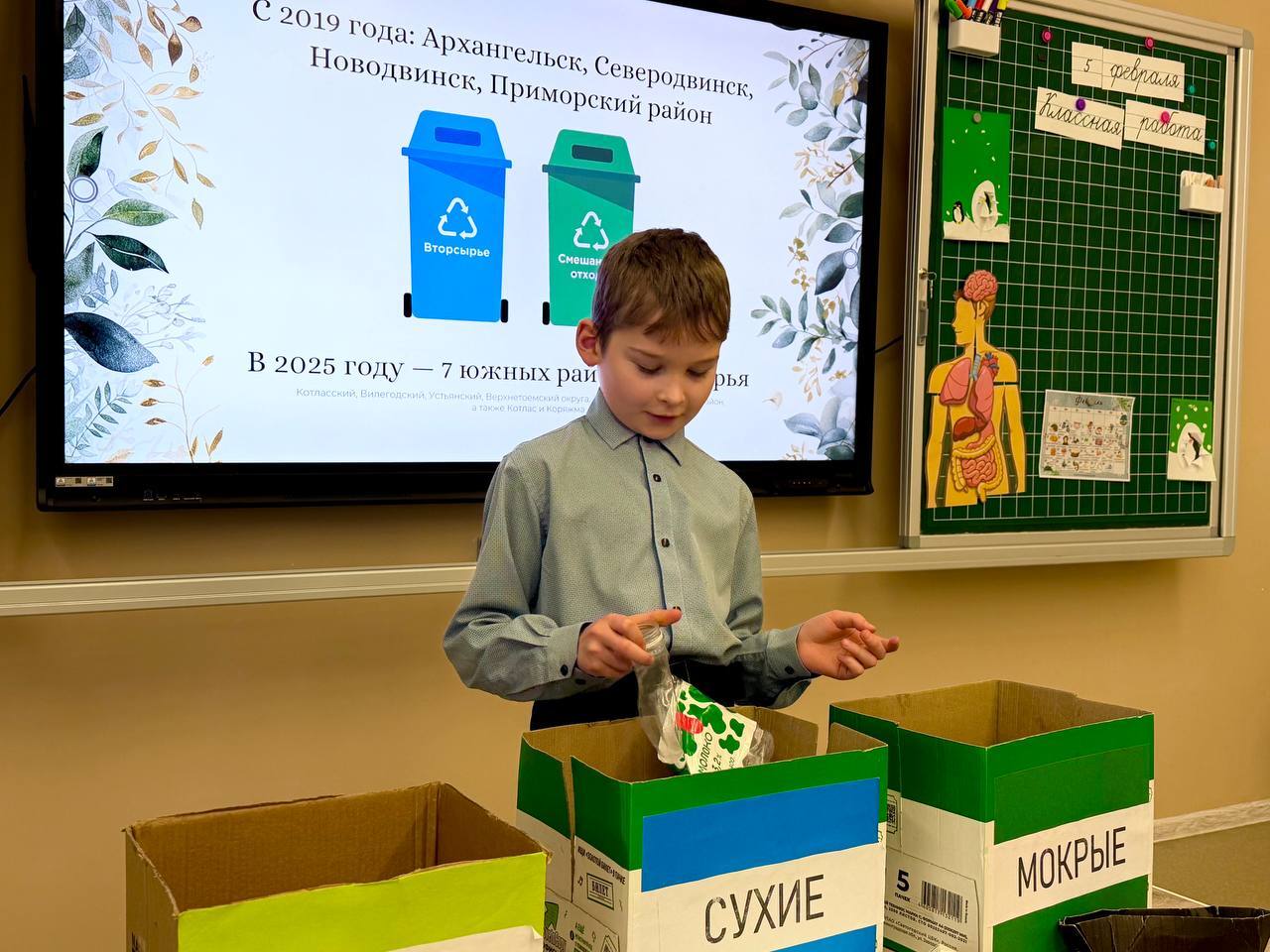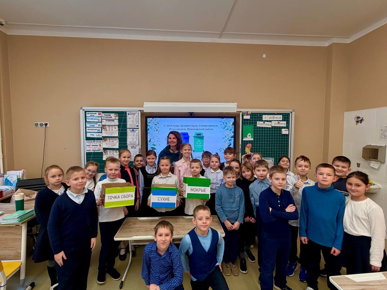 Серию уроков «Сортируем отходы, бережём планету» провела представитель Архангельского экологического оператора. 90 учащихся вторых классов в интерактивной форме познакомились с системой раздельного сбора отходов в городе, перспективами создания современной инфраструктуры и прошли практикум по сортировке.