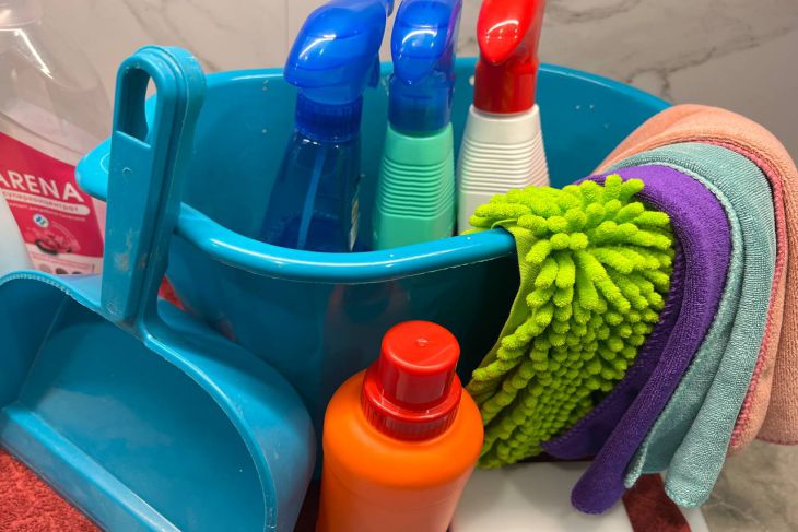 Если пыль смешалась с жиром (например, на кухонных шкафах), добавьте в воду каплю средства для мытья посуды.
