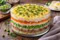 Готовлю, когда гости уже раздеваются. Совет: если подать салат порционно или выложить слоями в прозрачные бокалы, он мгновенно становится «звездой стола» ...