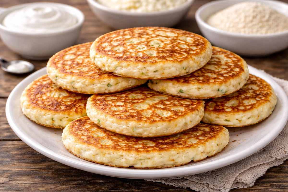 Это тот самый универсальный рецепт, который выручает в любой момент. Эти лепёшки я готовлю и к завтраку, и к ужину, а иногда использую как основу — заворачиваем внутрь варенье, сыр, фарш или просто подаём со сметаной. Получаются мягкие, пышные, с приятным творожным вкусом. Делается всё за считанные минуты, а съедаются они ещё быстрее.