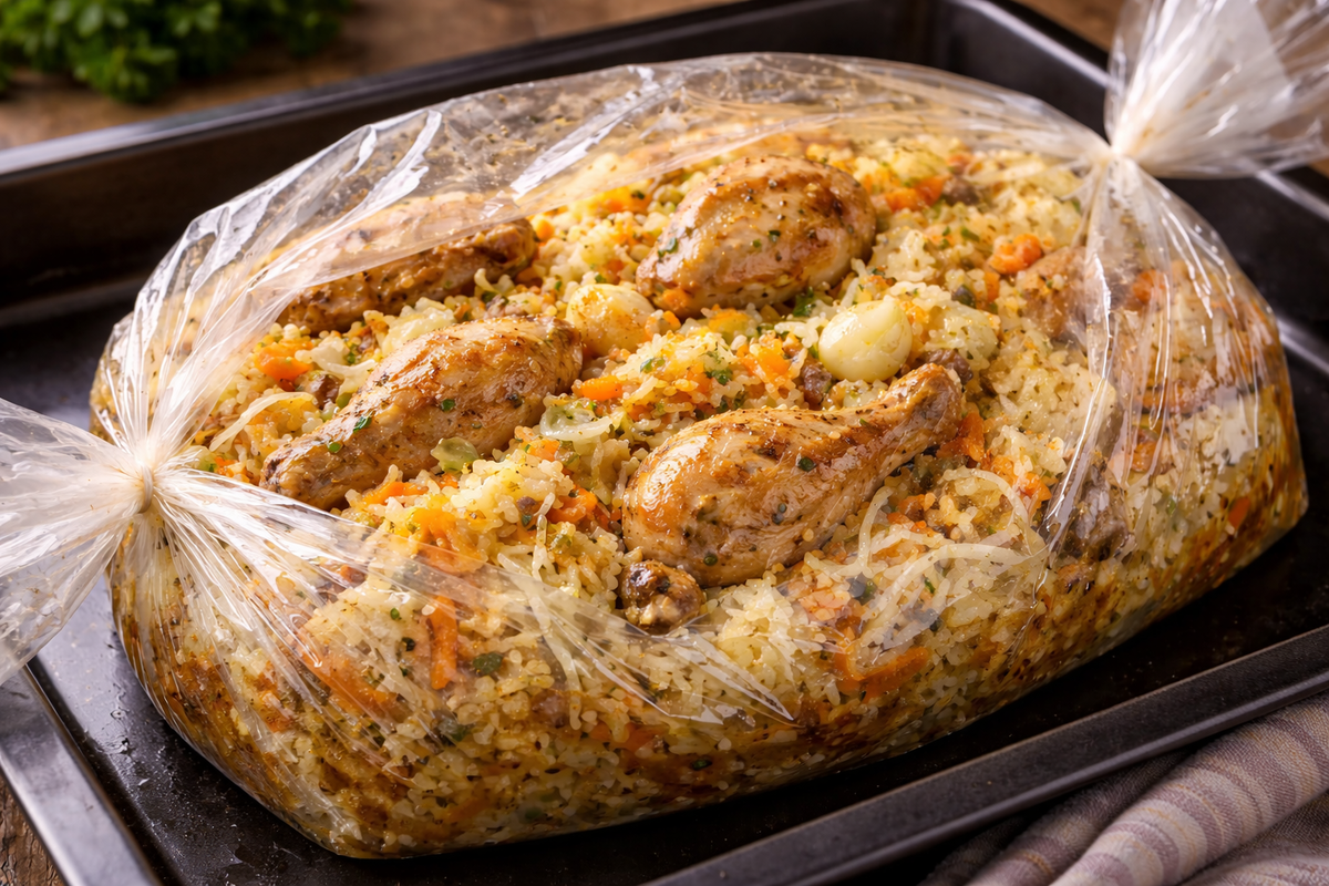Этот капустный плов — настоящая находка, когда хочется вкусно накормить семью без лишней возни. Всё складывается в рукав для запекания, отправляется в духовку — и через час на столе ароматное, рассыпчатое блюдо. Курица получается мягкой, рис пропитывается соками, а капуста делает вкус особенно сочным и домашним. Отличный вариант и для обычного ужина, и для праздничного стола.