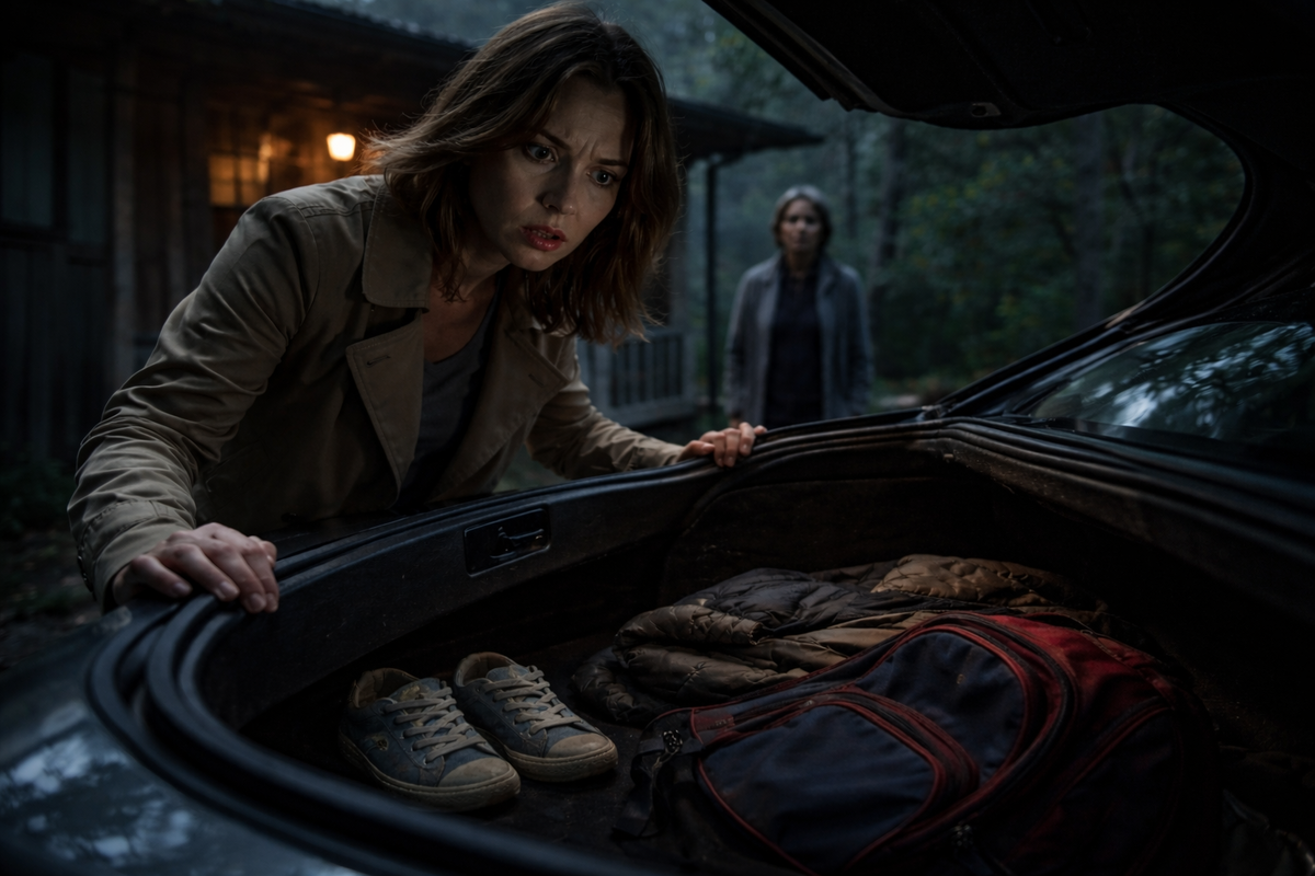 После короткой перепалки о машине, Лена обратила внимание на слегка открытый багажник. Внутри её ожидали детские кроссовки, рюкзак и куртка мужа, в которой он, как сказала она, уехал в командировку. Вопросы нарастали.